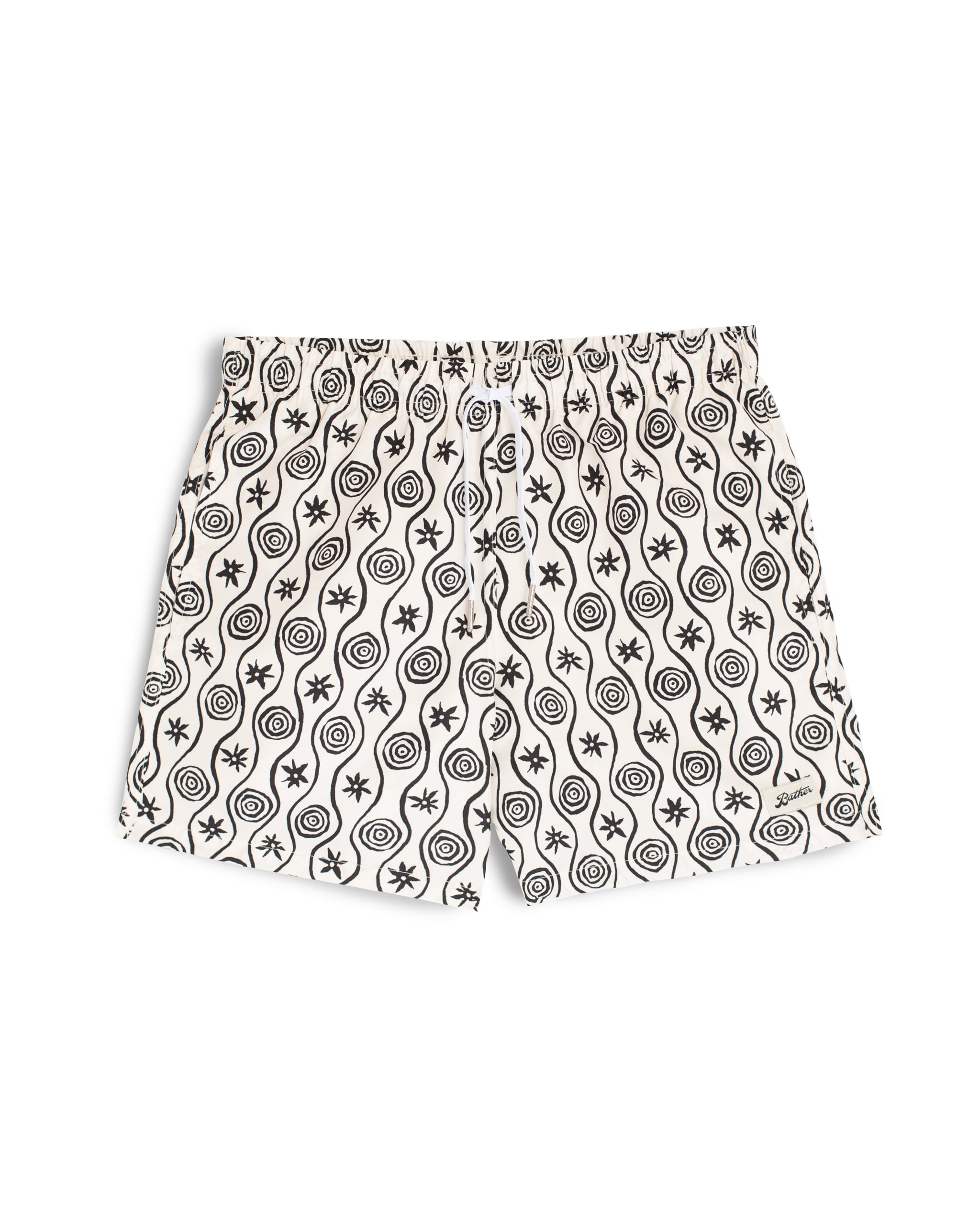 White Sunwhirl Print Swim Trunk